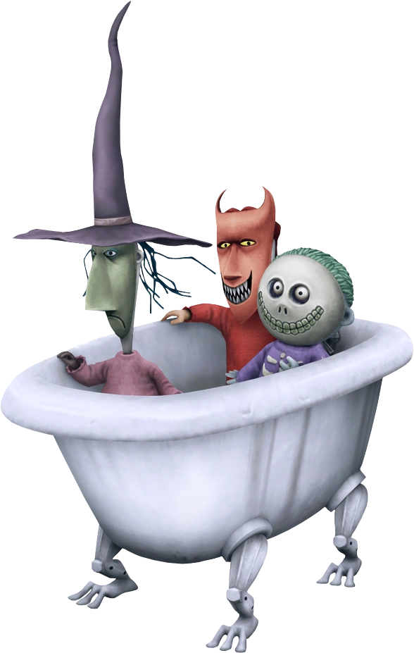 Die Badewanne wird hier nur einmal gesehen, wo das Trio sie benutzt, um Halloween Town zu durchreisen, um Malefiz zu treffen.