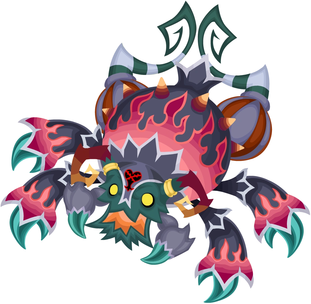 Sein Körper ist schwarz mit einem Muster aus roten Flammen und mit Stacheln bedeckt. Sein Kopf und die Krallen an seinen Füßen sind flaschengrün getönt. Die Form des Hinterbeins sowie das gestreifte Muster sind aufgebauscht. Seine beiden Beinpaare sind identisch und enden in Krallen. Bei seinem Kopf befindet sich in Gliedmaßen-Paar, bei denen sich am Ende jeweils eine einzigen Klaue befindet. Sein Kopf hat eine haarige Erscheinung und trägt das Emblem der Herzlosen auf der Stirn und wird von einem Paar brauner Antennen überragt.
