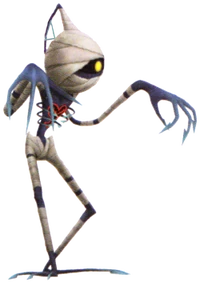 | Ein Herzloser, der hauptsächlich in Halloween Town umgeht. Seine Angriffsreichweite ist dank seiner langen Extremitäten enorm, so dass man sich ihm nicht leichtfertig nähern sollte. |