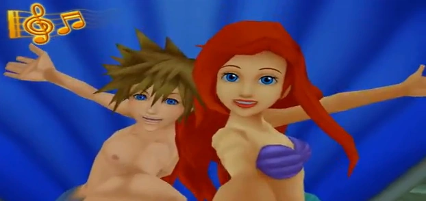 En una segunda ocasión, Ariel salvó a un príncipe de morir ahogado y se enamoró de él pero, conociendo a su padre, decidió apartarse (muy a su pesar) de su camino. La Sirenita tenía que cantar para un musical, pero tan deprimida estaba por lo que había hecho que no era capaz de concentrarse en los ensayos, ni siquiera cuando el cangrejo Sebastián pidió ayuda a Sora.