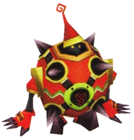 Tiene una cabeza negra, esférica, con dos ojos amarillos pequeños y brillantes. Usa un casco cónico, de color rojo con una antena angular unido a la punta y un borde de oro. La mayor parte de su cuerpo está envuelto en un traje de armadura esférica con ocho puntas cónicas, de color púrpura oscuro espaciados uniformemente sobre su superficie. Esta armadura es de color rojo, con algunas decoraciones de color amarillo y negro. Sus delgados brazos sobresalen de las aberturas circulares en la armadura en cualquiera de sus lados. Sus piernas delgadas parten desde una abertura grande y circular en la parte inferior de la armadura, y las puntas de sus pies apuntan hacia arriba. La Esfera Chamuscante tiene dos emblemas Sincorazón, uno en su frente y otra en su parte posterior, ambos de los cuales se colocan en el centro de un anillo de color oro.