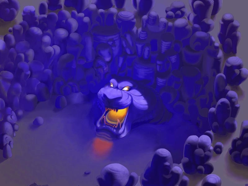 La Caverne aux Merveilles est en fait une caverne abritant les trésors les plus incroyables ! C'est dans cette grotte de sable qu'Aladdin a trouvé la lampe magique et, par conséquent, a fait la connaissance du Génie. Son gardien, la Tête de Tigre est son entrée.