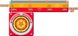 Diminue les HP max de Sora et des ennemis (de 100% à 0%). Si la jauge est réglée sur 0%, le mode 1HP est activé, où Sora et les ennemis n'ont qu'un seul HP chacun. Ce mode est nécessaire pour obtenir certains Trophées.