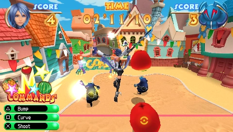 Le jeu consiste à envoyer des fruits dans le but adverse tout en protégeant son propre camp, l'objectif étant d'obtenir un meilleur score que l'adversaire. Le terrain est séparé en deux parties par une ligne rouge infranchissable par les joueurs et qui détermine également quels fruits vous pouvez frapper. Les filets des deux camps sont les buts à viser. Ils se déplacent sur la largeur du terrain et peuvent parfois même monter dans les airs, aussi, se contenter de renvoyer les fruits est assez hasardeux si on ne vise pas. Les deux filets restent l'un en face de l'autre.