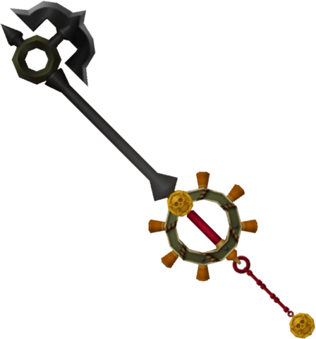 L'anneau de cette Keyblade représentant un gouvernail, on peut en conclure qu'il est à l'origine de son nom. Son panneton prend la forme d'une ancre. Quant au porte-clef, il s'agit d'une des pièces maudites.