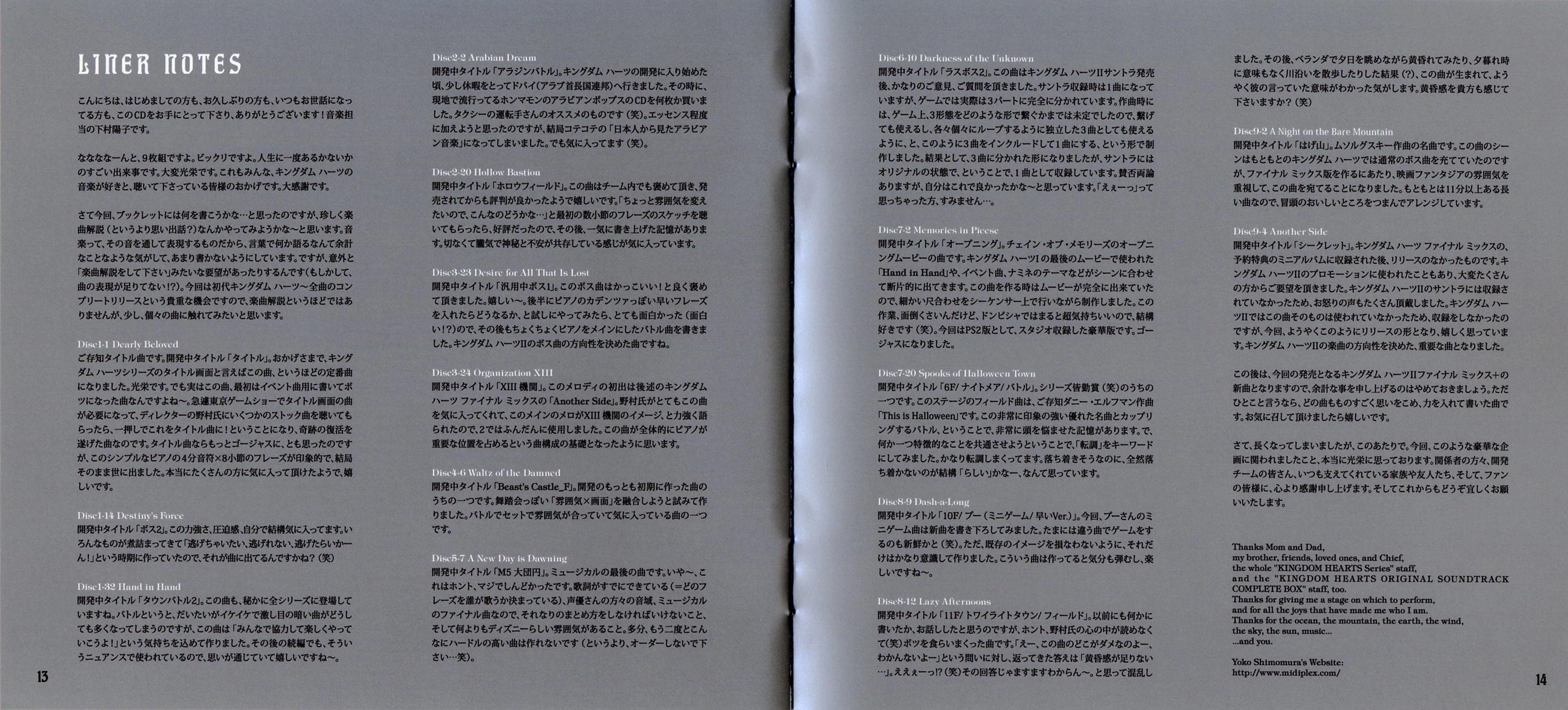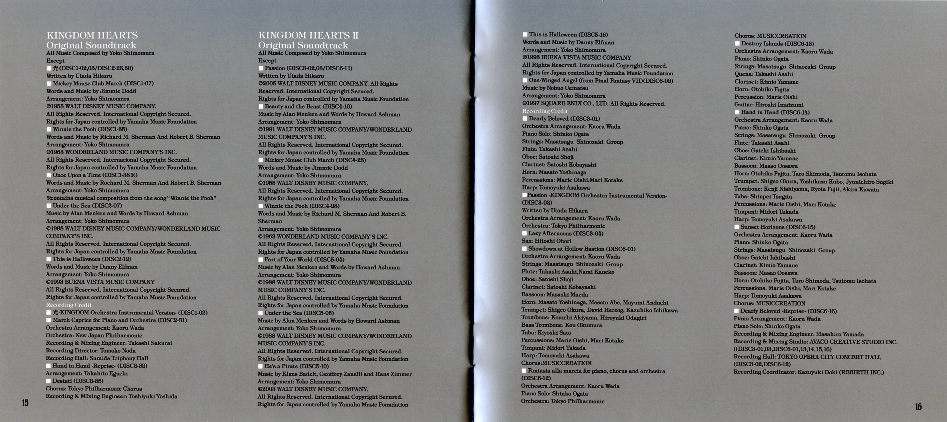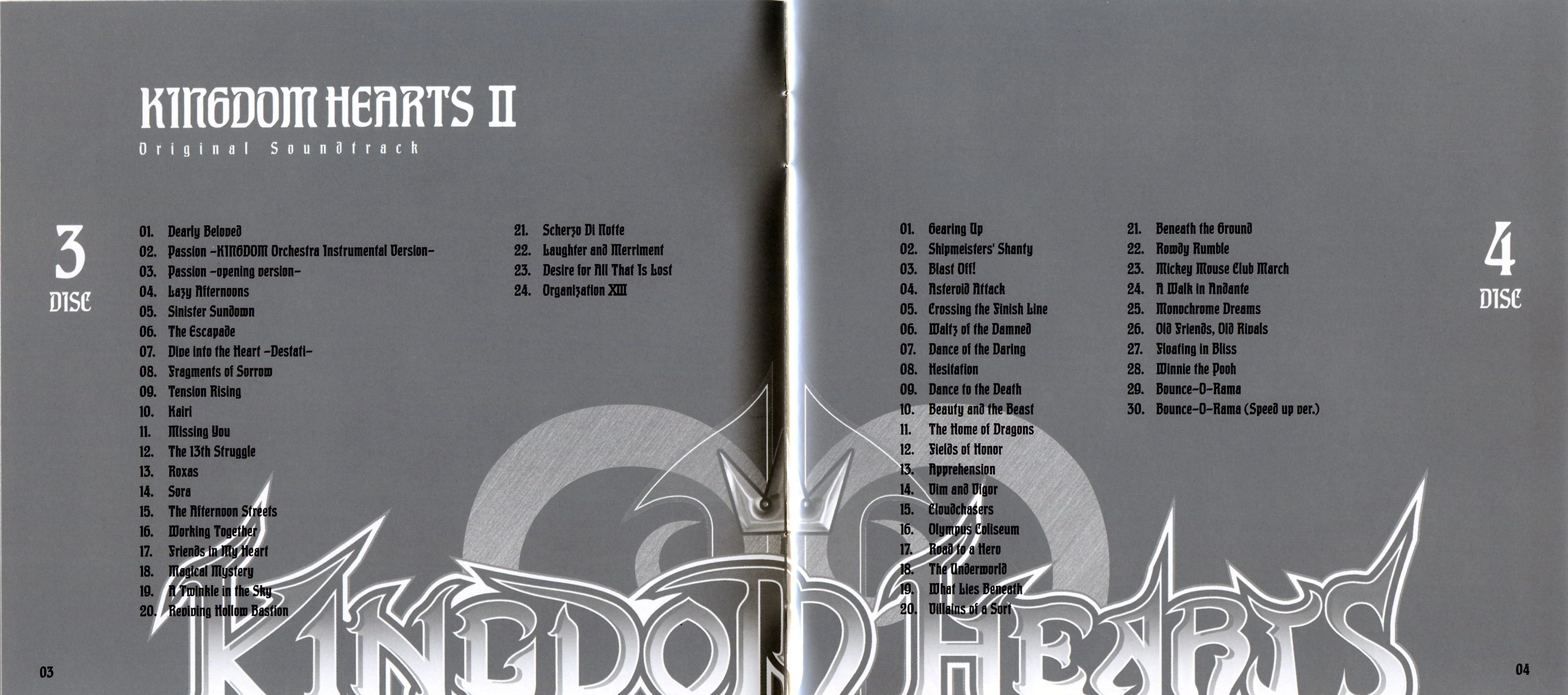 - En plus des disques 7 à 9, contenant les bandes originales de Kingdom Hearts: Re:Chain of Memories et Kingdom Hearts II: Final Mix jusque-là inédites, ce coffret contient six pistes de Kingdom Hearts II non présentes sur l'album Kingdom Hearts II Original Soundtrack. Ces pistes proviennent toutes de mini-jeux, et sont :