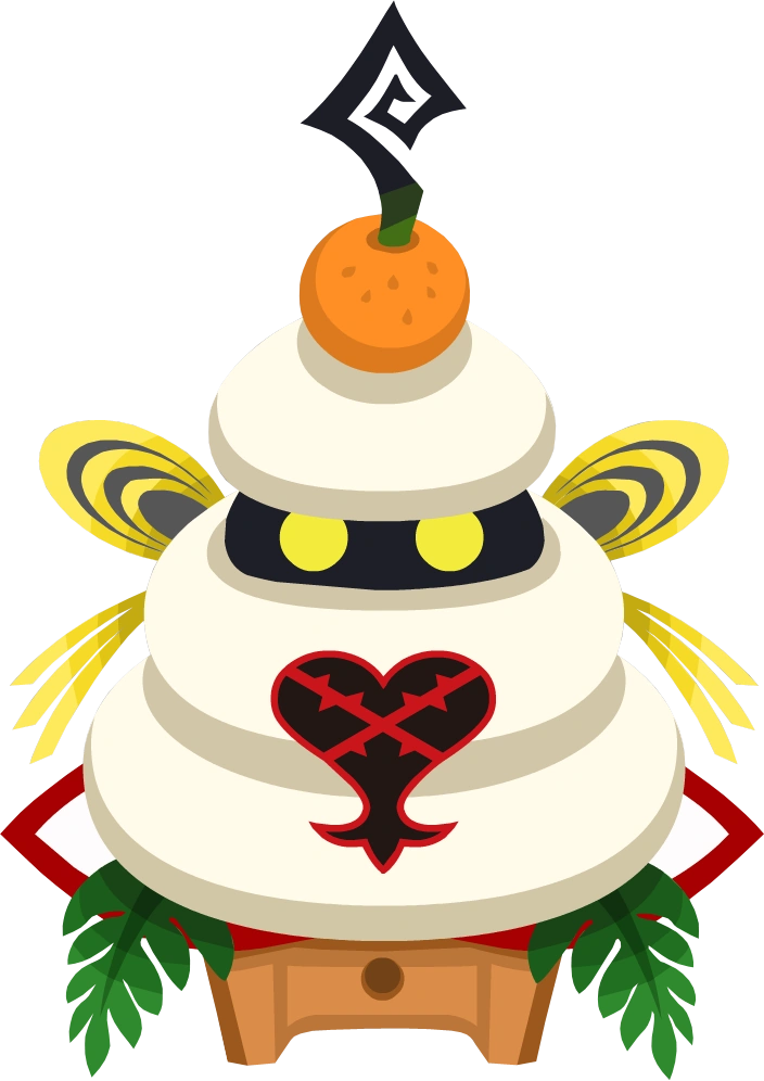 L'apparence de ce Sans-cœur est similaire à celle des Sans-cœur magiciens tels que le Nocturne Rouge. Au lieu d'une robe, son corps est formé d'un gateau de riz à étages, de couleur crème ; au lieu d'un chapeau, il porte une cerise confite sur sa tête. Il repose sur un présentoir en bois surmonté d'un coussin rouge et de feuilles de houx, et possède un ruban jaune qui lui forme des "ailes".