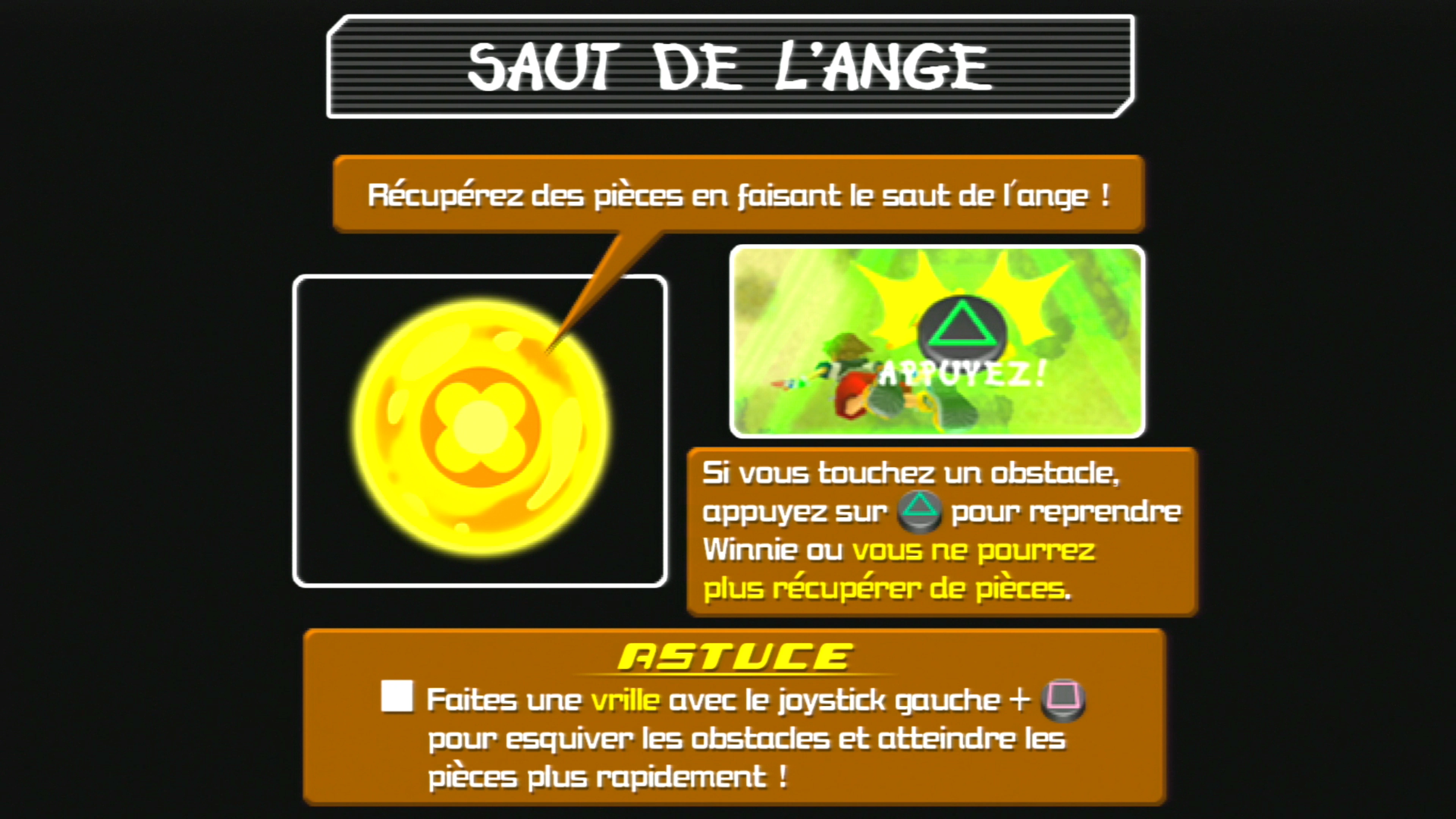 Saut de l'ange (プーさんと空中落下 Pū-san to Kūchūrakka) est un mini-jeu disponible à la Forêt des Rêves Bleus dans Kingdom Hearts: Re:Chain of Memories.