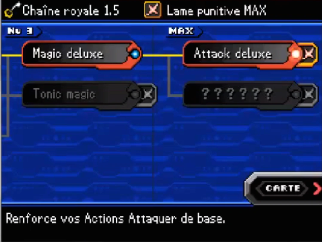 Les Actions Achever peuvent être débloquées de façon similaire aux Actions Matrix, et sont équipées en même temps que la Keyblade.