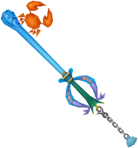 Le porte-clé de cette Keyblade est un coquillage, tout comme son équivalent dans Kingdom Hearts II, la Mystérieuse Abîme. Son panneton en forme de crabe rappelle ses origines "marines".