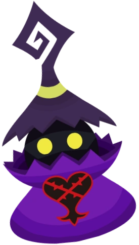 Ce Sans-cœur magicien est de couleur violette : sa robe est d'un violet vif, et son chapeau d'un mauve foncé.