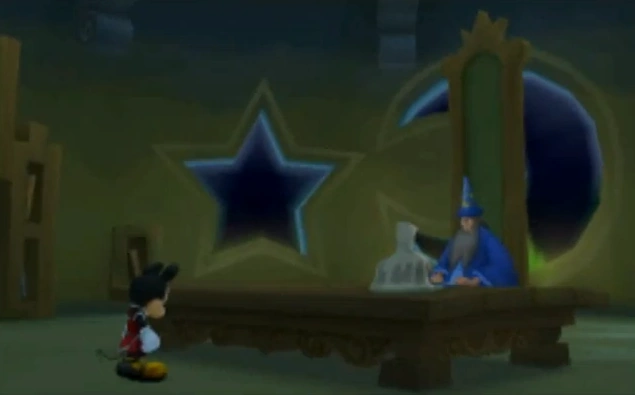 - ↑ 4,0 4,1 Kingdom Hearts Birth by Sleep - Yen Sid dice a Ventus che Topolino può essere tracciato ora che non può più spostarsi col Frammento di Stella. Il mago lo individua nel Cimitero dei Keyblade, ma l'Oscurità di Xehanort gli impedisce di vedere di più.