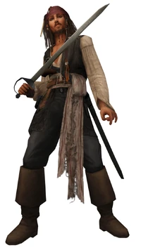 Capitão Jack Sparrow apareceu originalmente no filme Piratas do Caribe: A Maldição do Pérola Negra, interpretado por Johnny Depp. Nesse filme, o papel de Jack é semelhante ao seu papel na primeira visita a Port Royal em Kingdom Hearts II.
