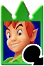 Peter Pan is a friend card only available in Neverland, specifically after entering the Room of Beginnings, up until the Room of Guidance, and then again in the Room of Truth and afterwards. Its effect is Hummingbird, although the card effect differs between versions. In the original Peter will rapidly dash from left to right and back, until three seconds has passed, dealing damage (×2) upon hitting an enemy. Unlike Ariel's Spiral Wave, Peter will actually aim towards enemies, although he remains most effective against larger groups due to his lower base damage. 3/4/8, 7/9/11