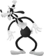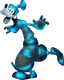Goofy is an anthropomorphic dog with black fur and droopy ears. His outfit in the Kingdom Hearts series is a modified version of his basic outfit in the modern Disney cartoons; in fact, he wears his normal outfit in the opening of Kingdom Hearts: Chain of Memories. He has two bucked teeth and three short hairs coming out of the top of his head, just in front of his hat. Goofy's hat is orange (save for a blue band in the middle) and the top is an odd shape, resembling a teardrop placed on its side. There is a small pair of red goggles around the bottom of the hat as well (strangely, the lenses of these goggles seem to be quite a bit smaller than Goofy's eyes).