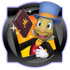 Any non-world specific characters, such as the Summon characters and discarded entries, such as that of a cloaked Organization XIII member after the real identity receives an article, or the defeated Heartless and Nobodies, appear under the "Jiminy" selection, symbolized by a picture of Jiminy.