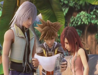 Sora, Riku and Kairi head back to Destiny Islands to relax before their big fight with the Real Organization XIII. Riku leaves Sora and her alone, saying he needed "time to himself". Sora is curious on what he meant by that, but Kairi grabs his attention by offering to share a Paopu Fruit with him. The two promise to keep each other safe and share the fruits together.