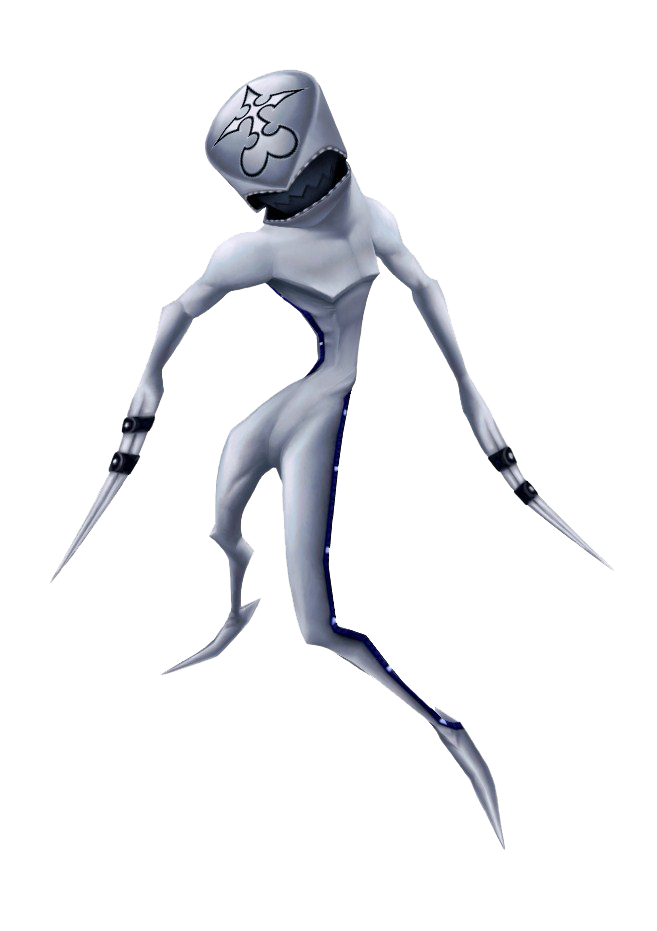A Nobody (ノーバディ Nōbadi?) is what remains of those who have lost their hearts to Darkness. The first generic Nobodies are seen in Kingdom Hearts II; although Xemnas appeared as early as Kingdom Hearts Final Mix, it was unknown that he was a Nobody. They are made of body and soul. The emblem used by a Nobody appears as a splintered upside-down heart, often appearing on the head or chest. The emblem is first seen in Kingdom Hearts: Chain of Memories on the head of the Specter.