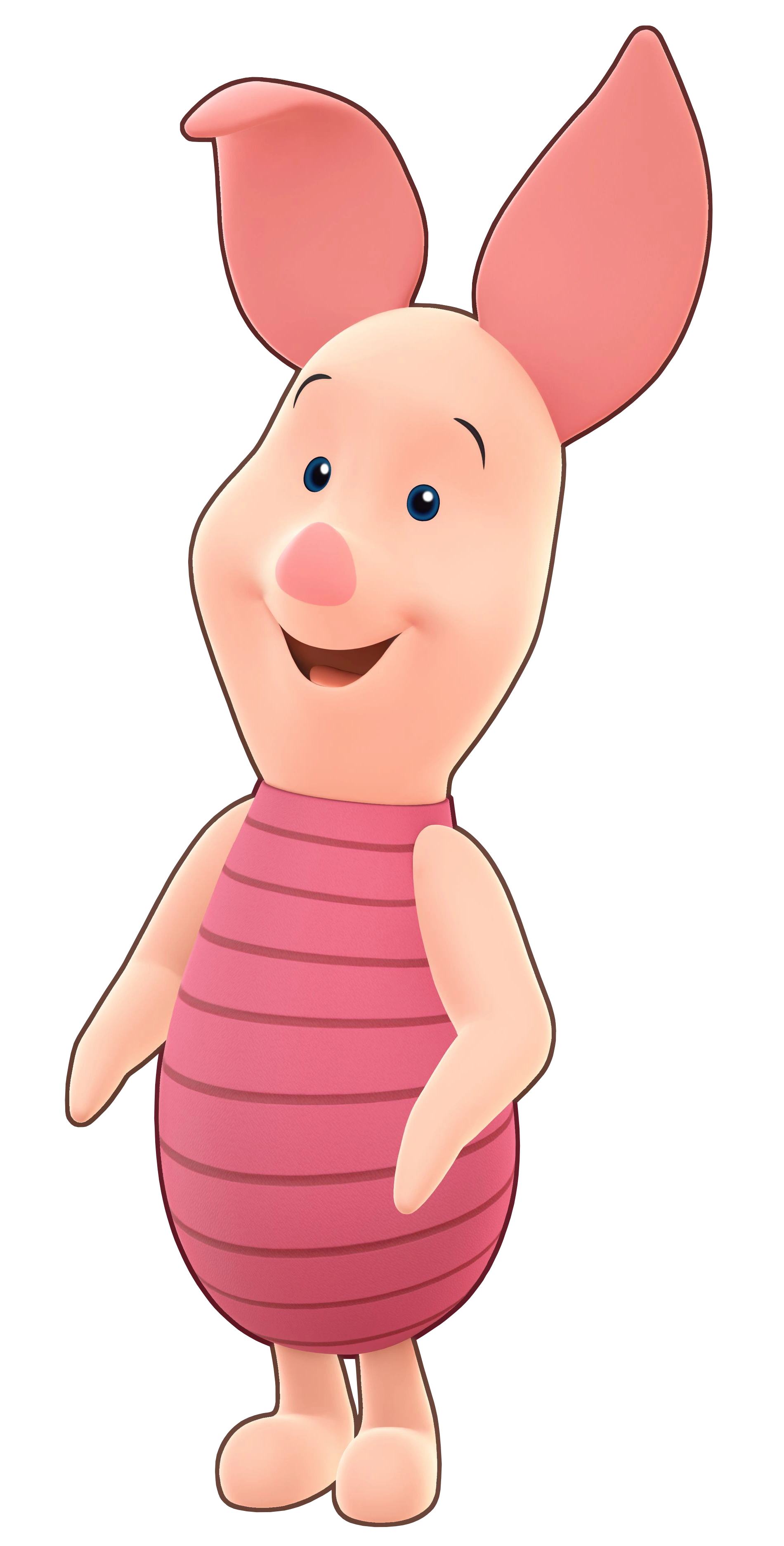 Piglet's appearance in the Kingdom Hearts series is based on his appearance in Walt Disney's Academy Award winning short "Winnie the Pooh and the Blustery Day", and all of his appearances in the Pooh franchise afterwards. He was originally created by the real life Christopher Robin and his father, A. A. Milne, who both expanded upon his character from a small doll of a piglet that Christopher owned. He made his literary debut in A. A. Milne's book Winnie the Pooh, playing Pooh's best friend from the very beginning.