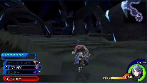 The Lower Zone is a maze-like area, with countless cliffs and twisted pathways populating this zone. In order to advance through here, it is necessary to make good use of the dark orbs that push you away. There are zones where the pathway is vanished, and just noticeable for a subtle purple glow. For the path to appear, Aqua must defeat the Heartless that spawn near them.
