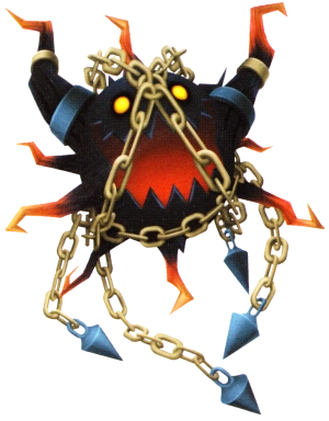 However, when it is driven from the walls, its chains are released and it transforms into the monstrous Dark Thorn. In this new, powerful bestial form, it attacks the party ferociously with furious attacks and its ability to become invisible. Sora, however, is able to use the very elements that the Heartless had recently possessed to beat it into submission. The Heartless fades back into darkness and Xaldin leaves the castle to reform his plan.